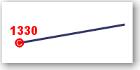 DR positions are marked on the plotted course line. The symbol is a small semi-circle above the line with a small dot or short stroke at its centre. The DR position is labeled with the time or estimated time of arrival using the 24-hour notation. The time is entered at an angle to the bottom of the chart (to show that it's an estimate). |